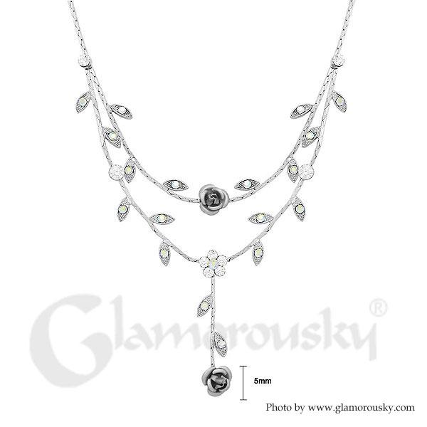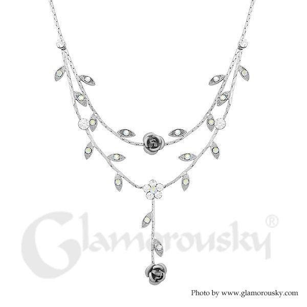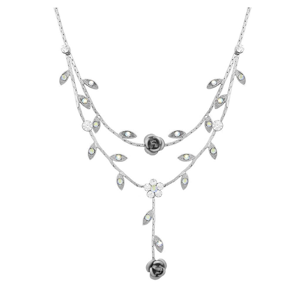 Dazzling Rose Necklace with Silver Austrian Element Crystals