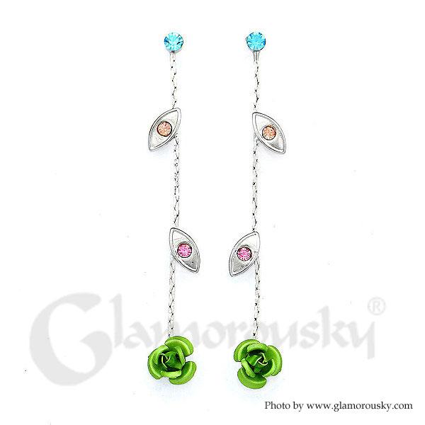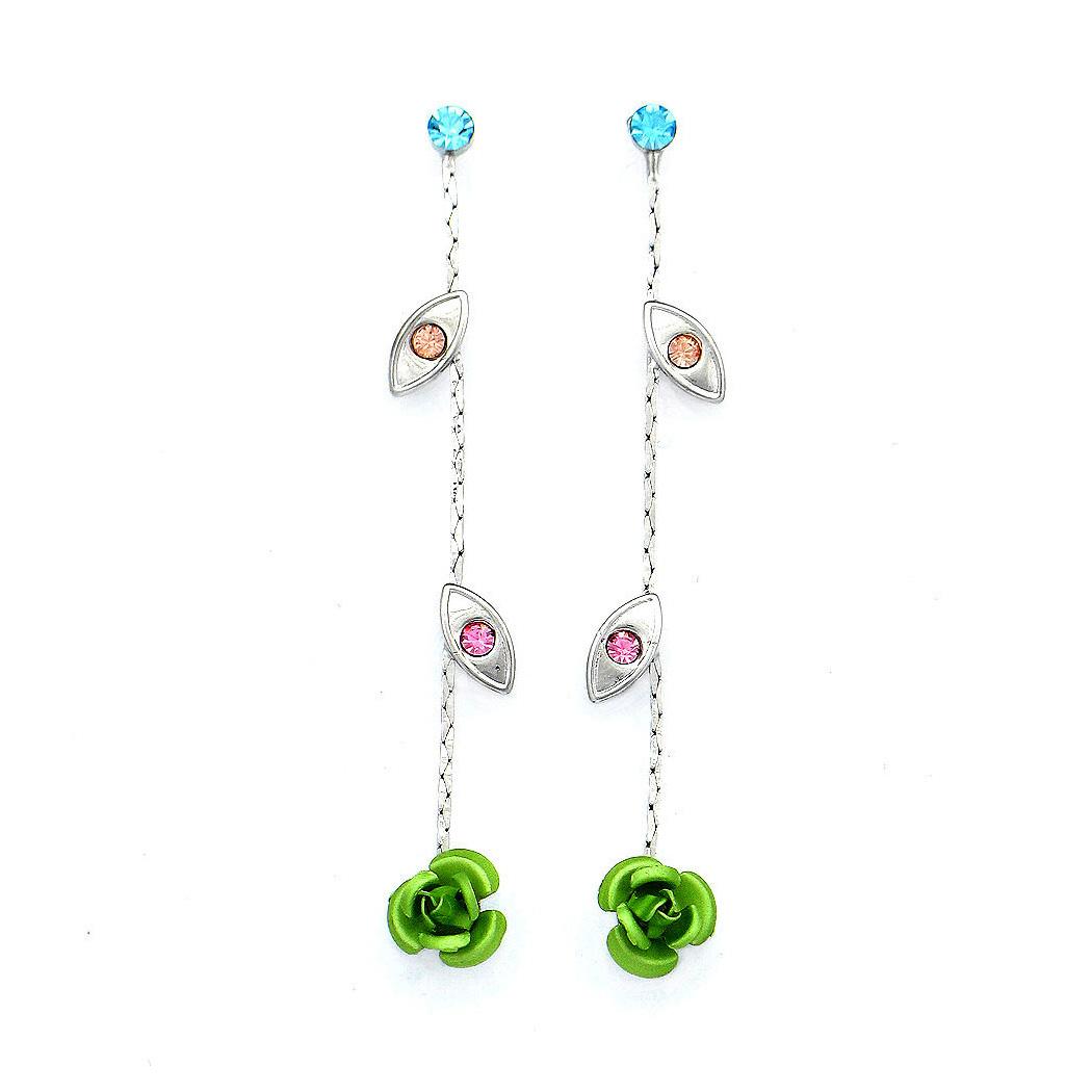 Elegant Rose Earrings with Multi Austrian Element Crystals
