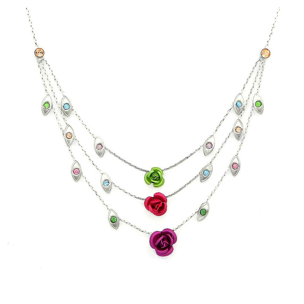 Elegant Rose Necklace with Multi Color Austrian Element Crystals