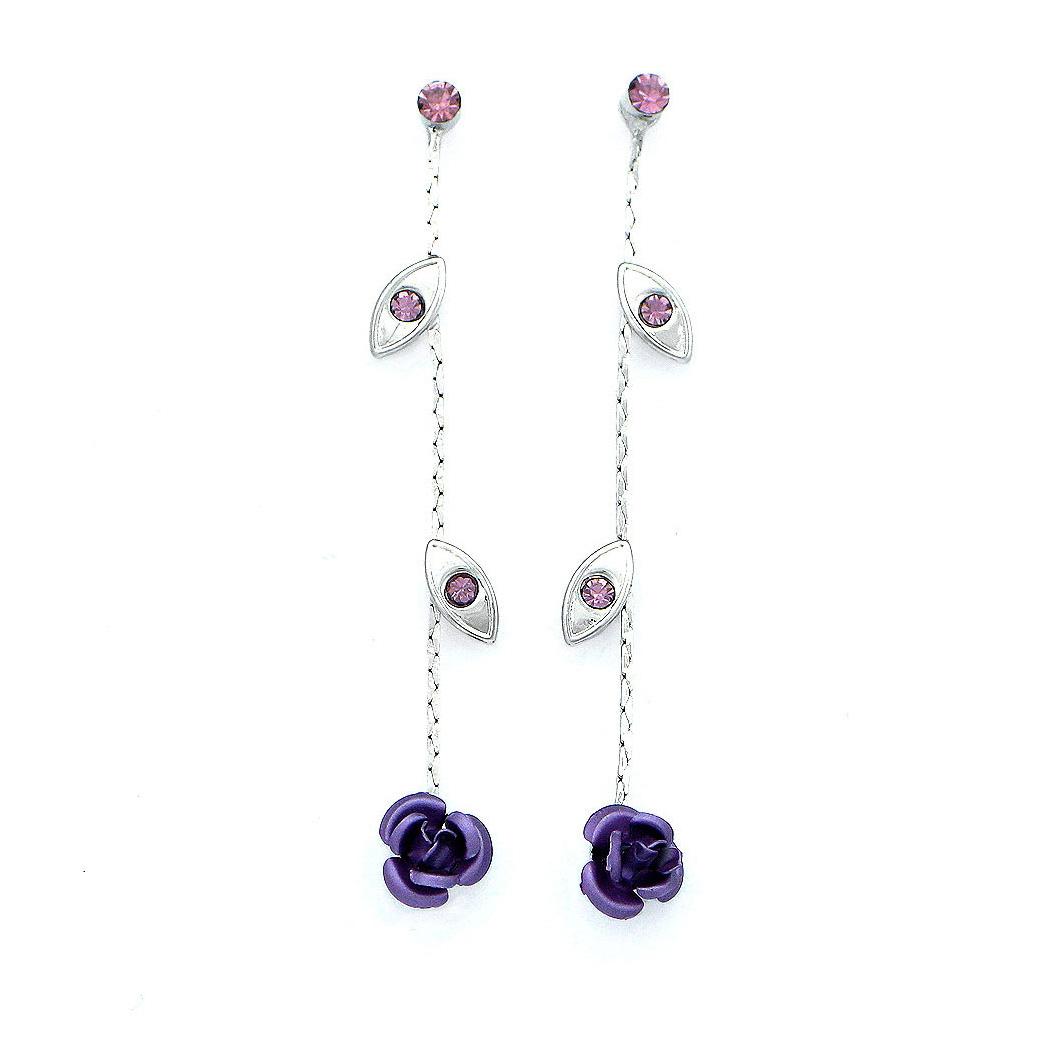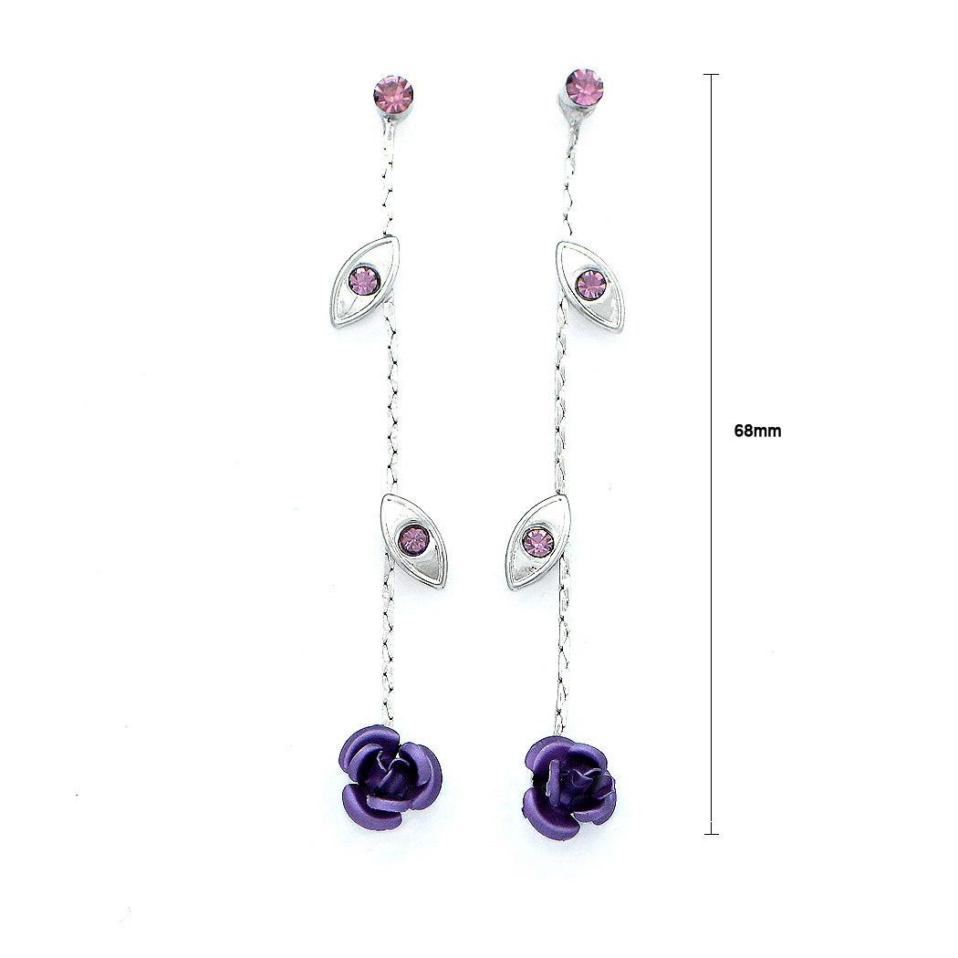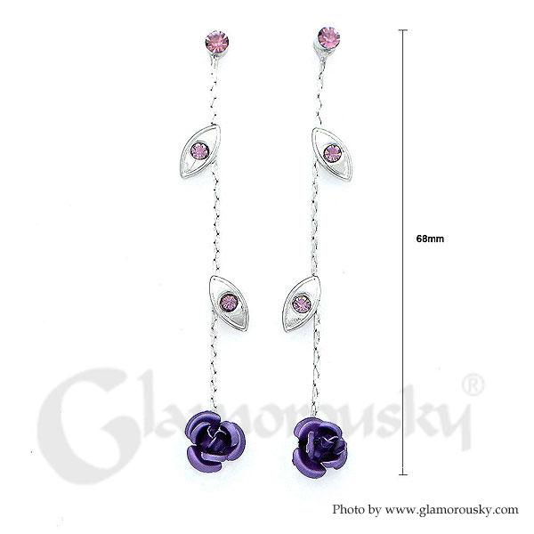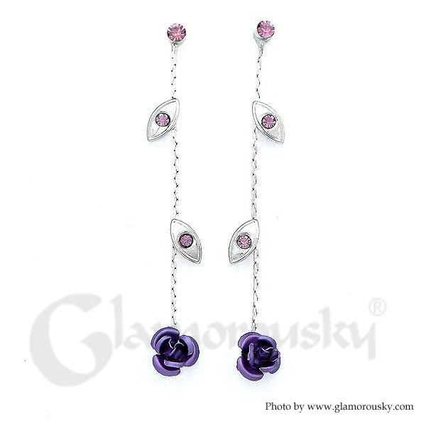 Elegant Rose Earrings with Purple Austrian Element Crystals