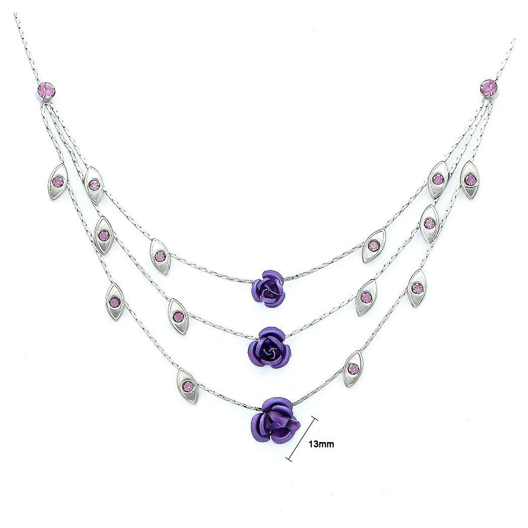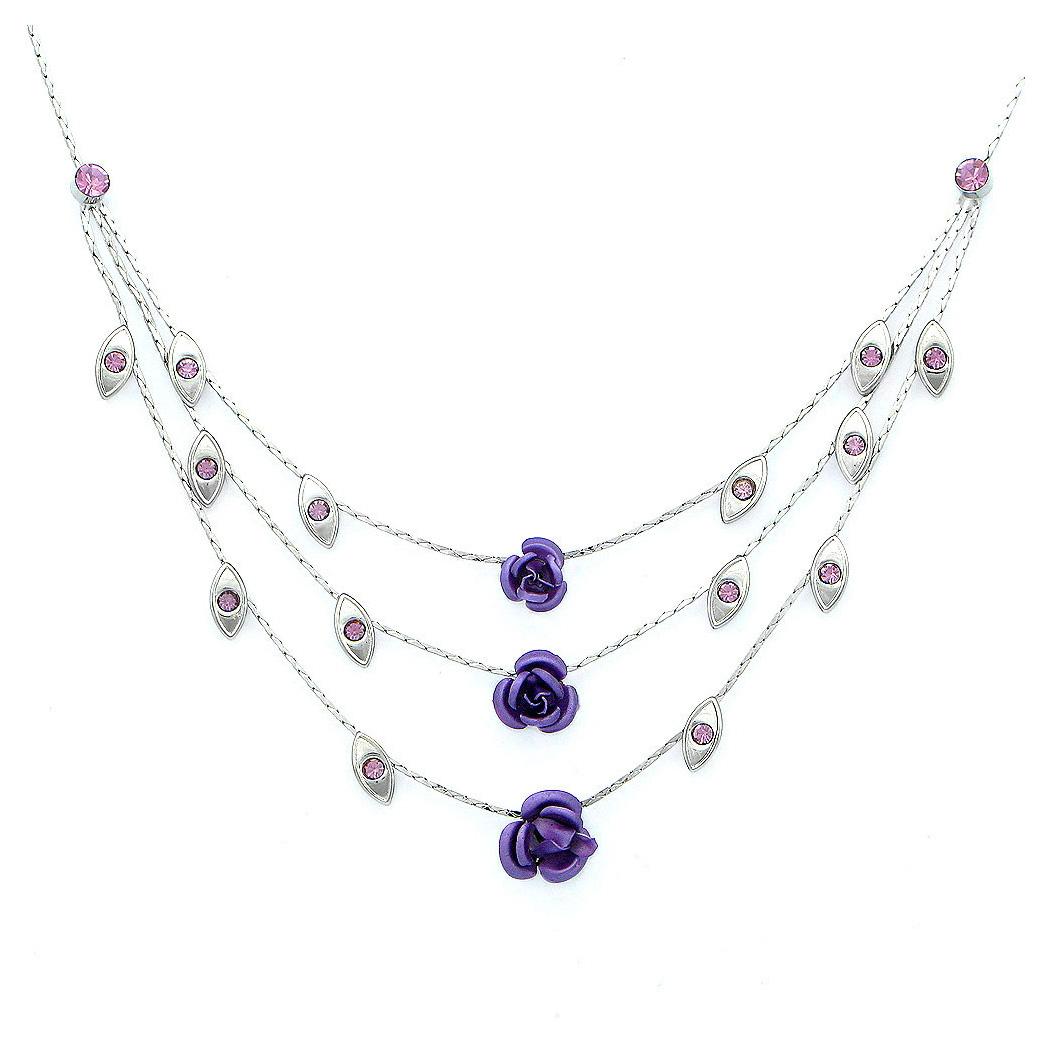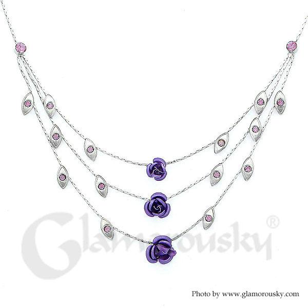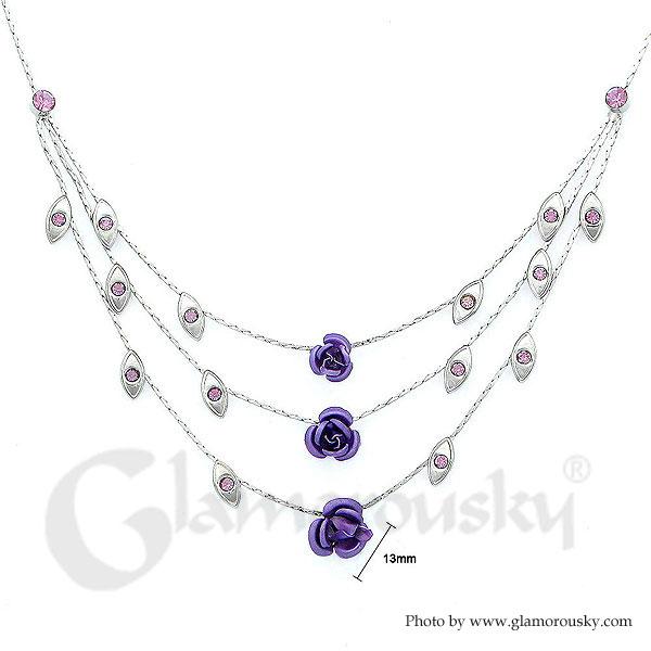 Elegant Rose Necklace with Purple Austrian Element Crystals