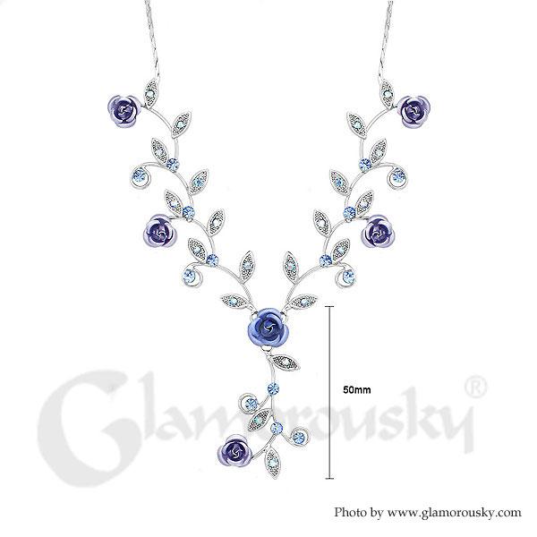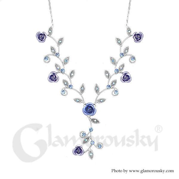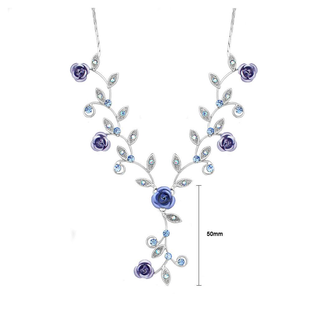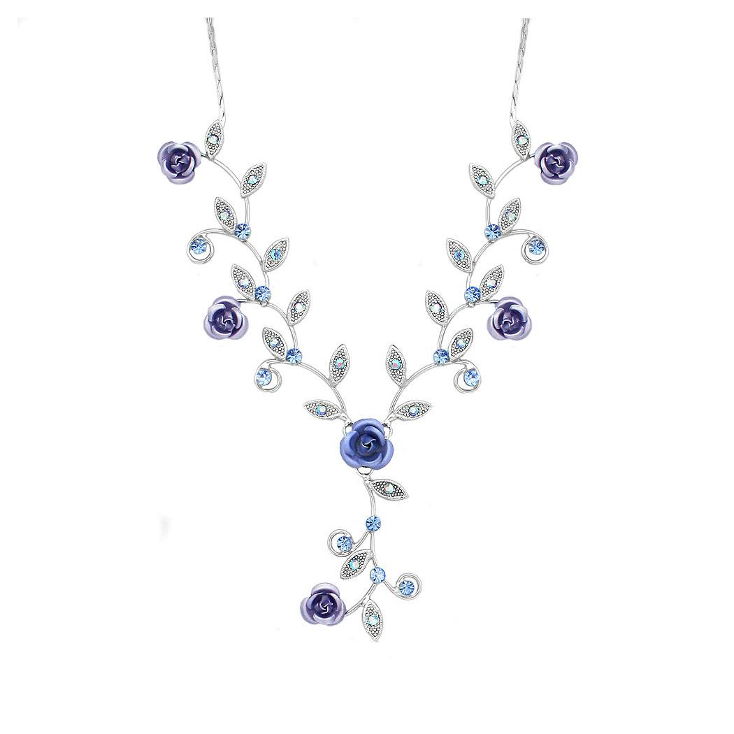 Charming Rose Necklace with Blue Austrian Element Crystals