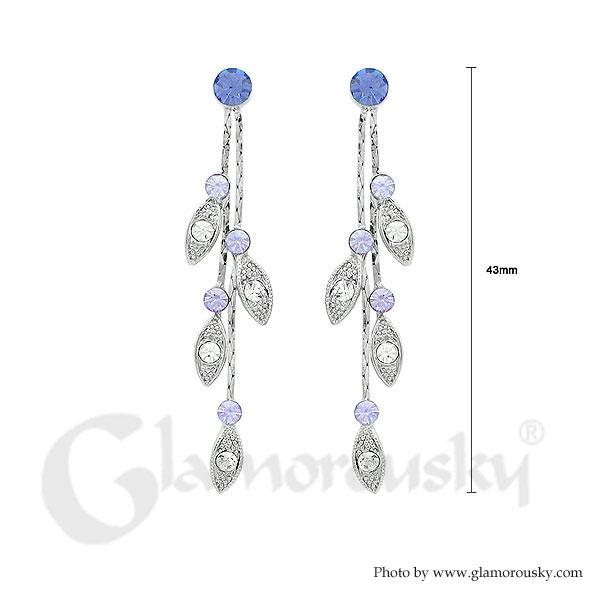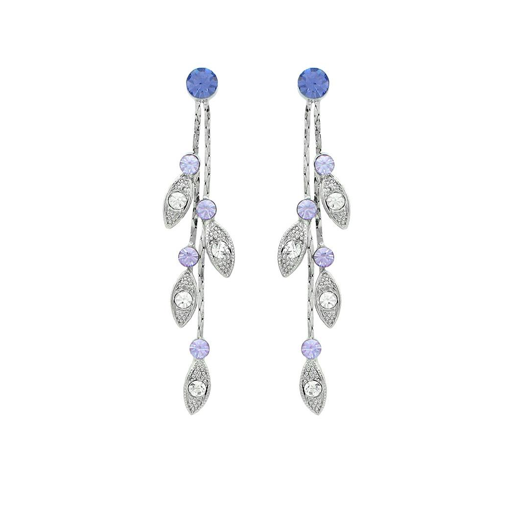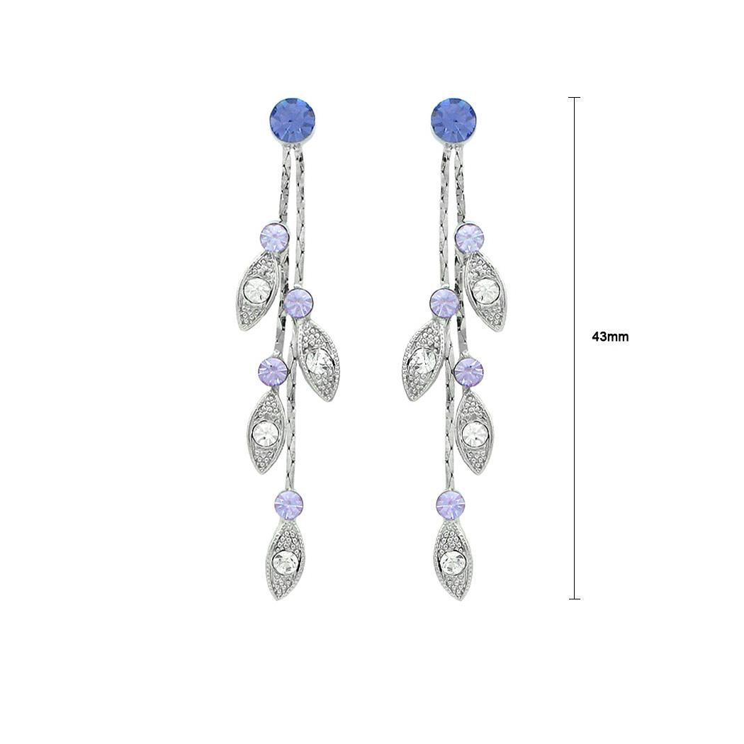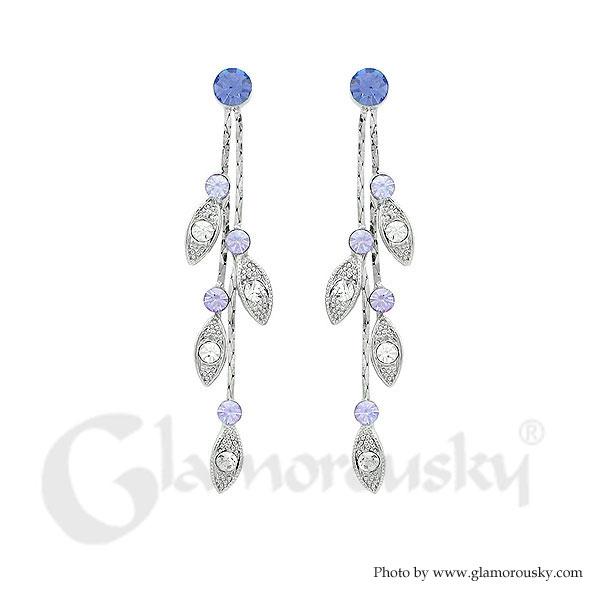 Dazzling Leaves Earrings with Purple and Silver Austrian Element Crystals