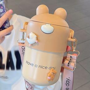 High appearance level lovers sippy cup go out portable cute rabbit kettle children's thermos cup can be inclined across casual cup gifts