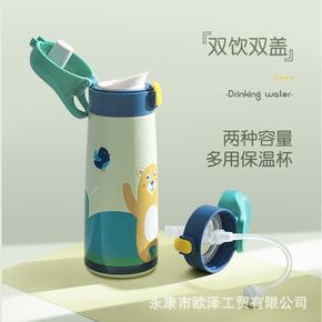 New 316 stainless steel thermos cup for children with double lid bouncing Cartoon portable water cup for children with straws