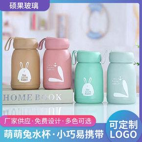 Cute rabbit glass cup cartoon rope with cup creative glass plastic shell cup opening activities push gift cup