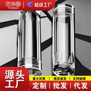 Double layer glass thickened heat insulation tea cup portable high-grade LOGO printed word men's gift crystal cup wholesale