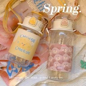 Korean version of ins sippy cup with cup cover high appearance level anti-ironing glass Portable portable girl student cute water cup