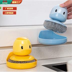 新款小黃鴨清潔刷去汙鋼絲球刷家用按壓式自動加液不鍋刷潛水鴨刷