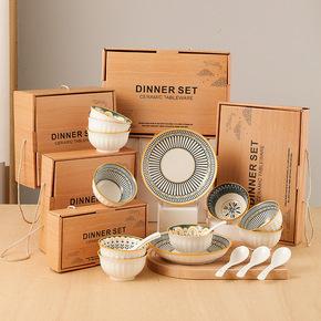 Japanese printed ceramic tableware, tableware, chopsticks and plate set, gift box, household rice bowl, opening gift activity, hand ceremony