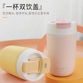 新款雙飲杯辦公室不銹鋼保溫杯簡約時尚便攜帶吸管雙層辦公咖啡杯