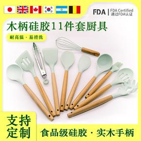 Wooden handle silicone kitchenware 12-piece set storage barrel non-stick pan kitchen tools cooking scoop set
