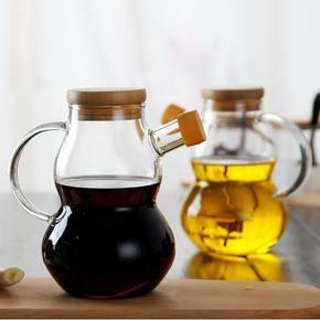 Creative sauce bottle seasoning jar high borosilicate perfume bottle kitchen supplies gourd wood cover oil bottle glass oil pot spot