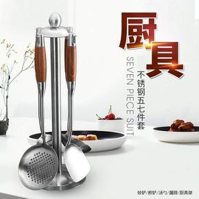 Manufacturer thickened stainless steel rosewood spatula soup spoon anti-hot kitchen household stir-fry shovel frying shovel colander set