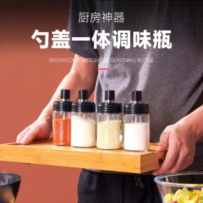 Spoon cover integrated seasoning jar kitchen storage artifact glass seasoning bottle barbecue brush oil bottle salt chicken seasoning bottle