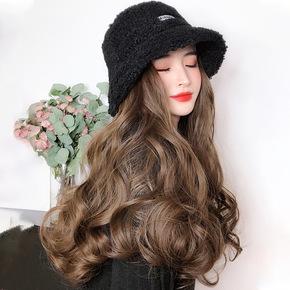 Hat wig long hair female wholesale lamb hair fisherman hat wig wig wig wig set one of the autumn and winter water corrugated wig hat