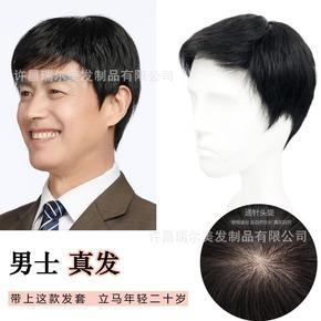 Men's wigs really hair head cover hand needle rotation to cover bald lifelike natural 37 points texture ironing the whole wig