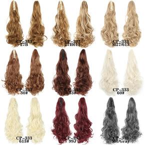 Manufacturers hot spot wholesale European and American long curly hair tiger clip horsetail wig big wave claw clip horsetail 55cm