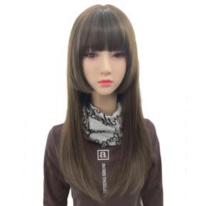 Wig female long hair fashion princess cut straight hair wig set hair simulation human hair round face wig full head set