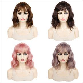 Water ripple wig head cover color daily short hair fluffy thin bangs wig head cover short curly hair fake head cover