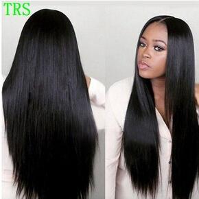 European and American women wig natural black long straight hair before lace synthetic fiber head half hook high temperature silk