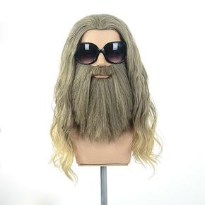 萬聖節假髮亞馬遜動漫複聯雷神COS假髮鬍子假髮山頂洞人頭套新品