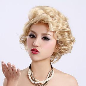 Europe and the United States short blond curls Fluffy girl inclined bang wig Marilyn Monroe classic lady wig