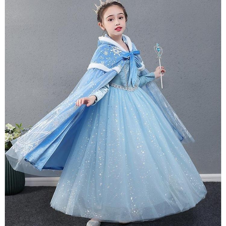 聖誕新款冰雪奇緣公主裙加絨連衣裙愛莎加絨連衣裙艾莎網紗秋冬裝