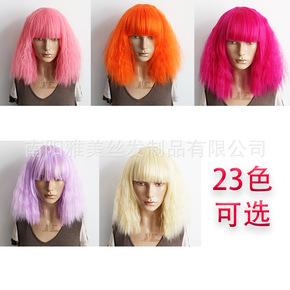 23色動漫彩色蓬鬆玉米須卷動漫頭套齊劉海假髮舞會表演頭套代銷