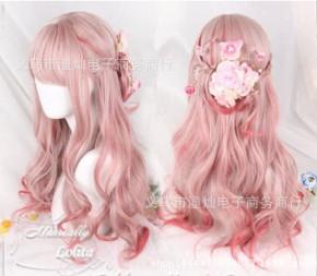 2020 new hot selling cosplay wigs oblique bangs pink pick color red long curly hair manufacturers direct wholesale