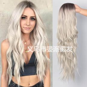 Europe and the United States wig female gradual grey corn beard long chemical fiber head cover in long curly hair manufacturers direct spot
