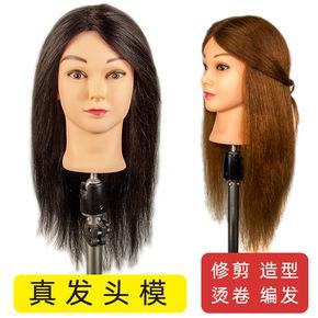 真發頭模教習頭假髮模特頭編發剪發燙卷練習真人發假人頭廠家批發