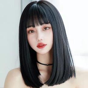 New wig girl Qi bangs black long straight hair comic Lisa cosplay wig full head set