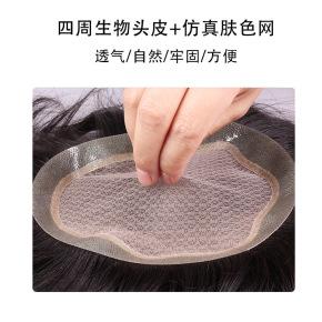 Men's real hair wig short hair top hair patch breathable comfortable invisible bionic membrane biological scalp double layer