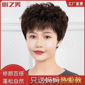 Hairpiece female short curly hair is light and breathable, middle-aged and elderly mother's whole hair cover domestic real hair mixed silk can be Qi oblique bangs