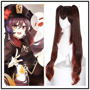 原神 胡桃cosplay動漫假髮coswig胡桃假髮 雙虎夾款雙馬尾長卷發