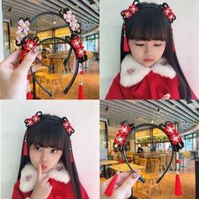 Children's Chinese dress headdress girl's fake hair band integrated tassel hair clip hair band baby's ancient style hair clip braid hair accessories