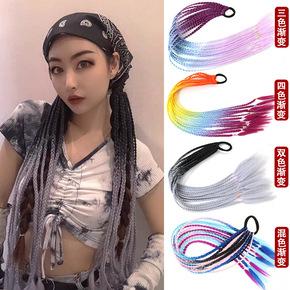 Tik Tok children's color wig braid gradient ponytail three-strand braid pigtail pigtail
