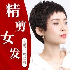 Hairpiece female short hair round face full head set dog gnaw bangs net red realistic handsome true hair fine dressing top wig set