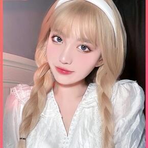 Hairpiece female long hair double hemp flower braid daily reducing age air bangs natural double ponytail long straight hair full head cover type