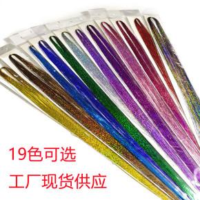 跨境批發七彩金絲鐳射絲接發片假髮女無痕閃光亮絲180根廠家批發