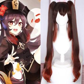 Original god animation wig double tiger clip double ponytail long curly hair coswig walnut wig head cover
