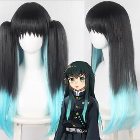 動漫假髮鬼滅之刃時透無一郎 cosplay假髮黑色漸變藍雙層直發假髮