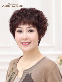 Real hair wig woman short hair short curly hair fluffy natural lady middle-aged and old mother wig set real hair