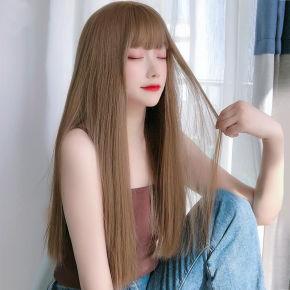 Wig female long hair natural full head black long straight long straight hair natural air bangs head cover net red long hair