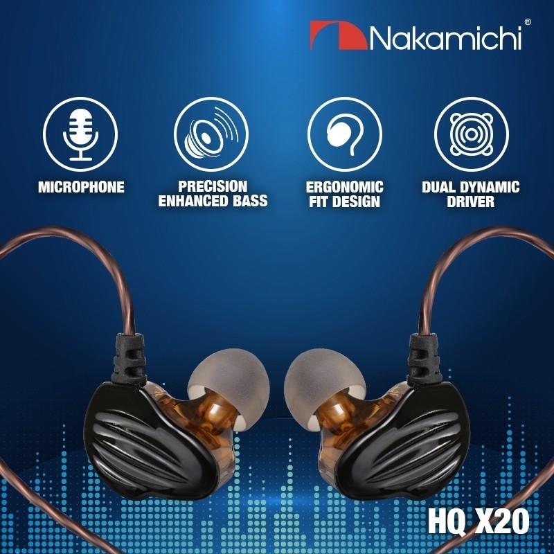 Nakamichi HQ-20 In-Ear Monitor (IEM) Earphone with Dual Dynamic Driver, Microphone, Ergonomic Fit Design