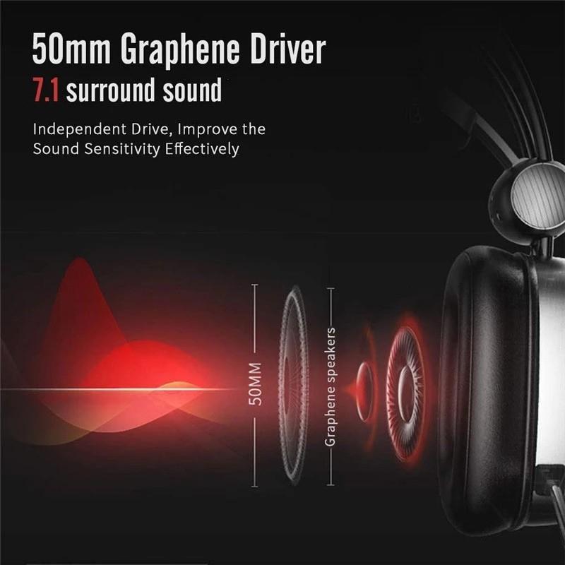 Dilengkapi dengan unit suara 50mm, yang memiliki jangkauan penuh, bass yang kuat, highs sebening kristal. Dengan sound card 7.1 efek bawaan yang memberikan pengalaman suara yang mendalam