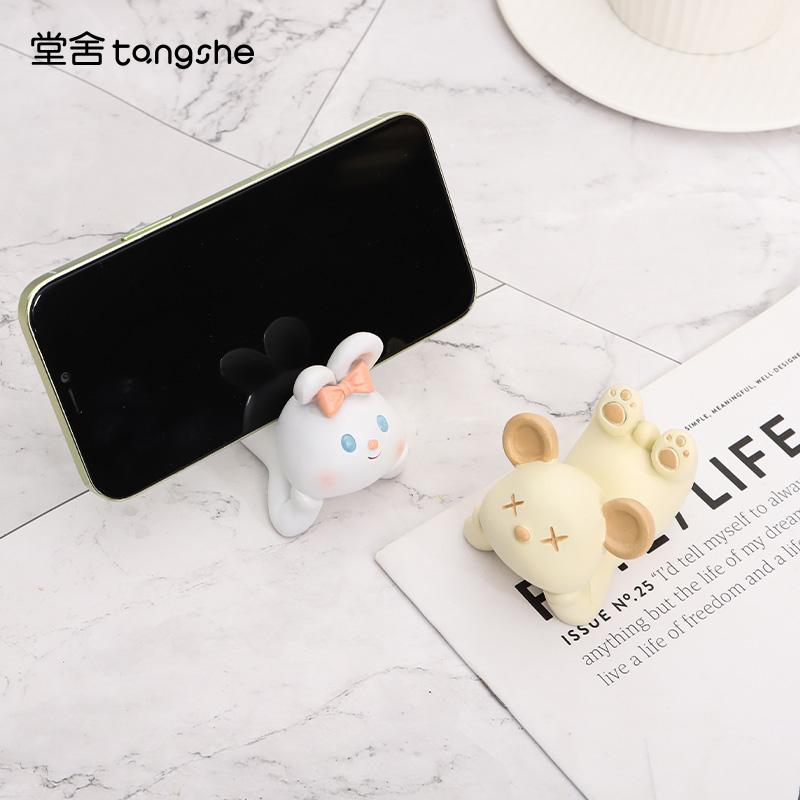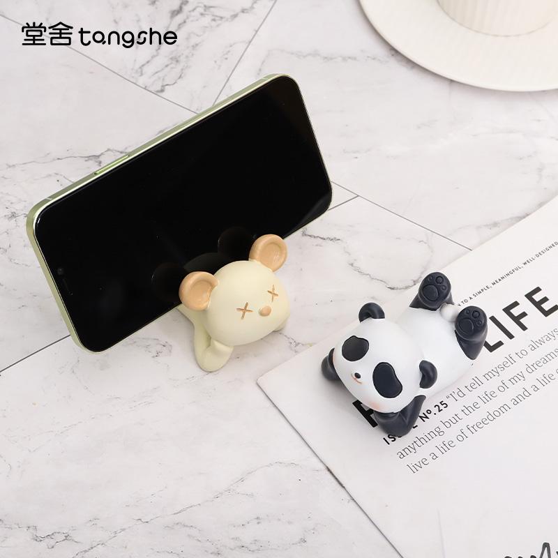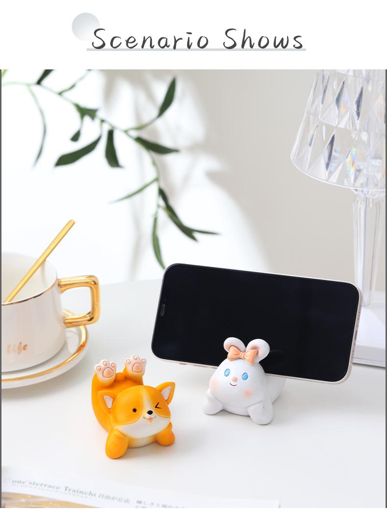 ROOGO Cartoon Animals Mobile Phone Holder Decorative Resin Miniature Figurines Funny Phone Holder For Desk