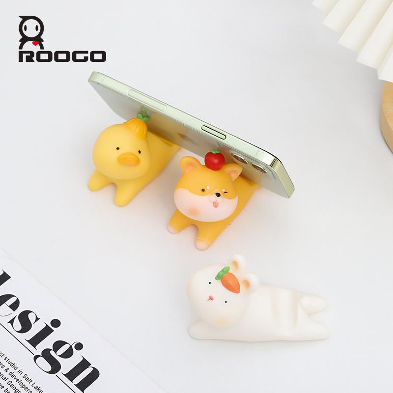 ROOGO Lovely Animals Phone Holder PVC Phone Support Accessories Cat Rabbit Dog Pig Ornament Home Office Desk