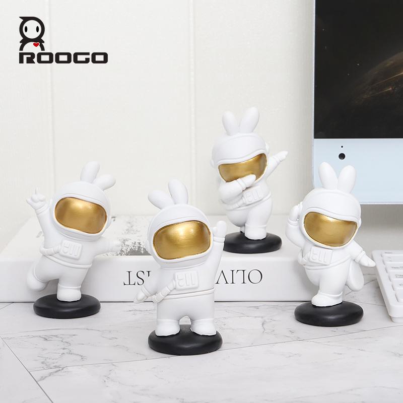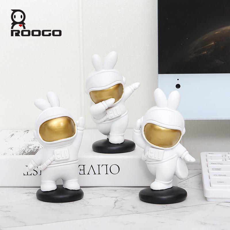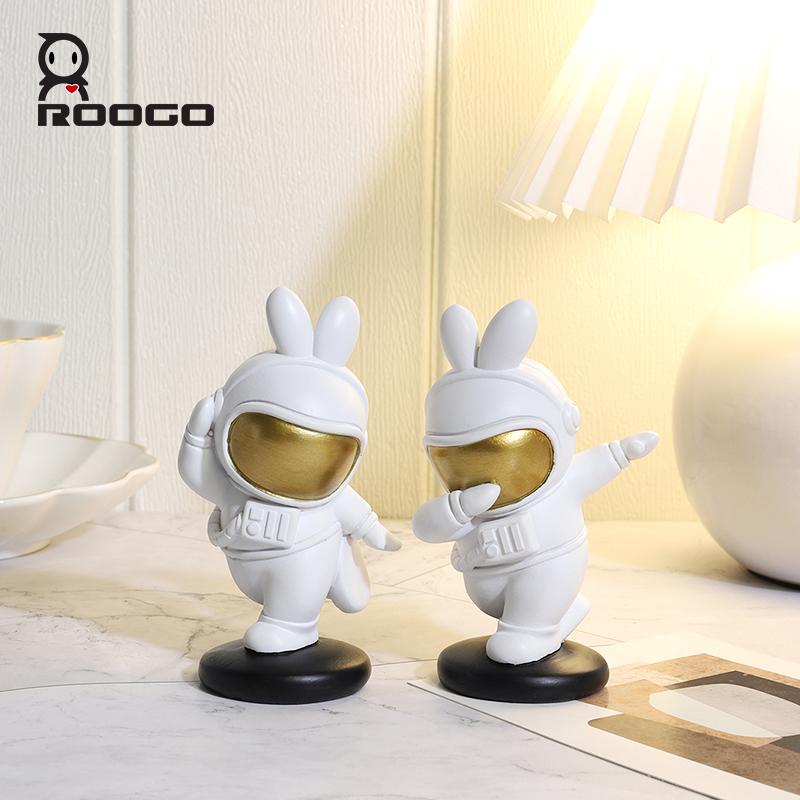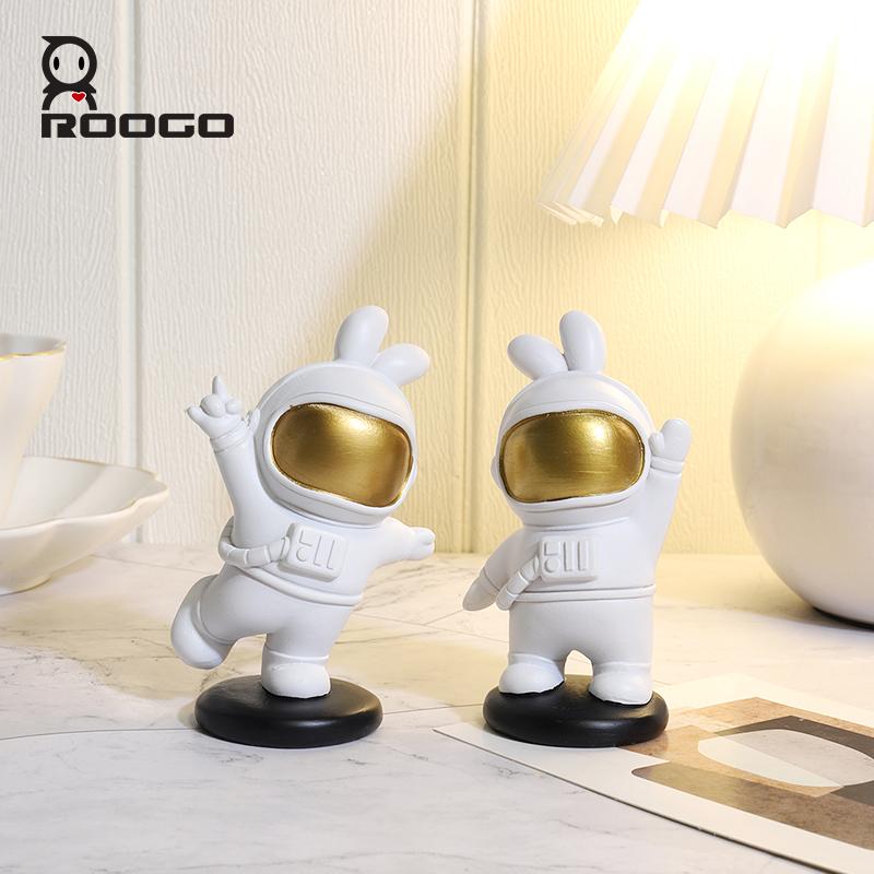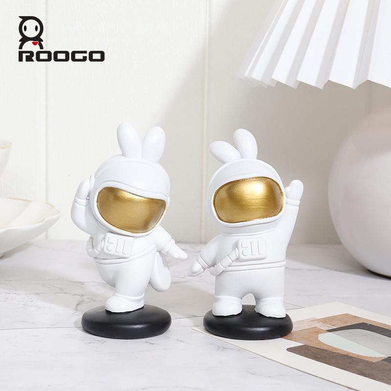 ROOGO Astronaut Rabbit Statues Cute Resin Home Decor Miniature Rabbit Ornaments Decorations For Desktop Car Cake